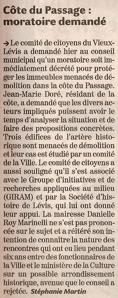 Article du journal Le Soleil, édition du mardi 8 nov. par Stéphanie Martin