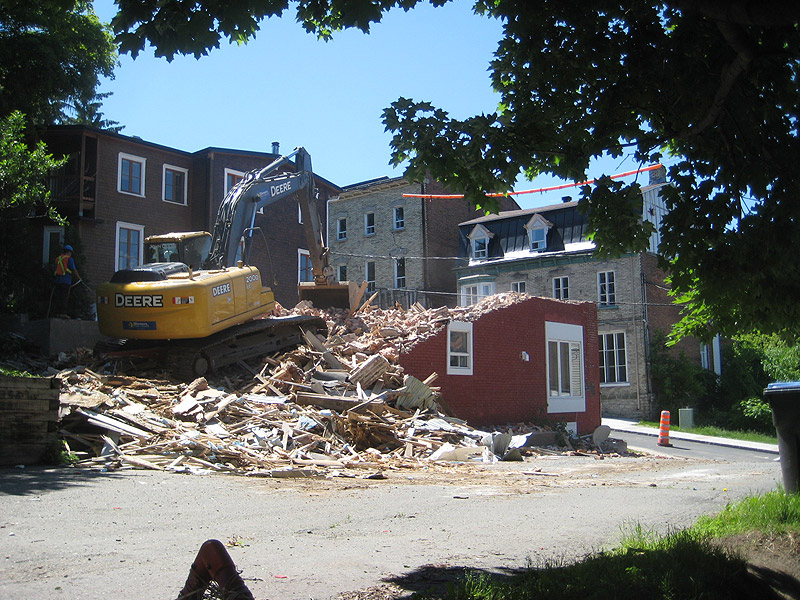 Ce matin, 14 juin 2012, démolition de la maison ancestrale Davies-Ramsay (1830). L’ancêtre George Ramsay, hôtelier, était venu d’Écosse et appartenait à la religion presbytérienne.