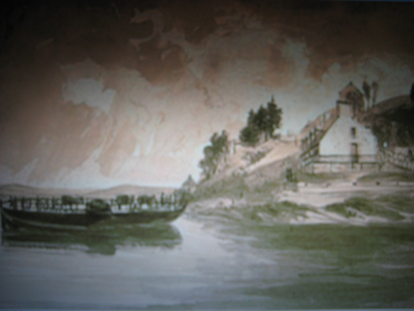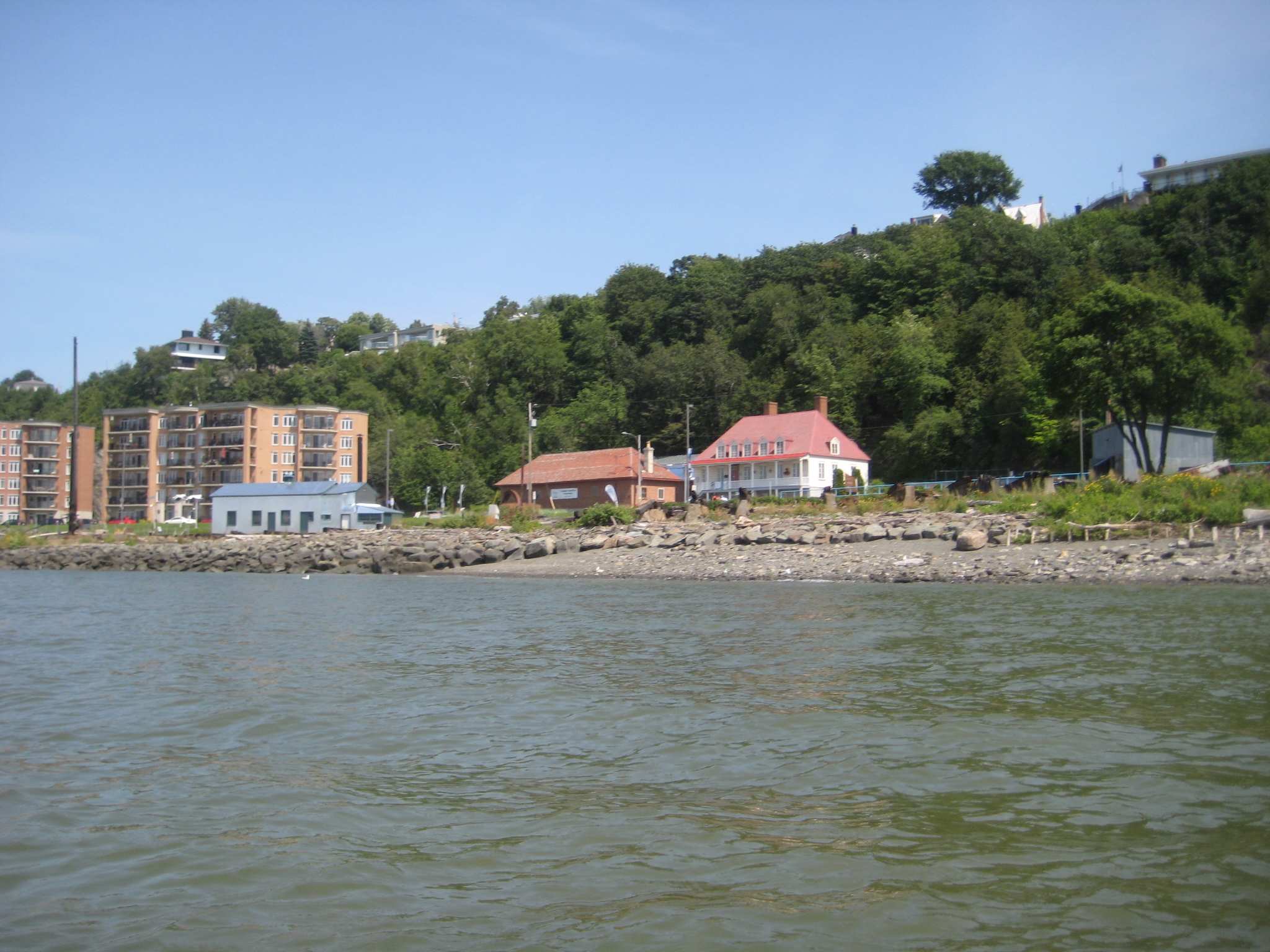 Quant à la bordure fluviale, le plan de lotissement initial datait du début de la Nouvelle France quand l’arpenteur Jean Bourdon avait divisé la superficie de la Seigneurie de Lauzon en lots destinés à des fins agricoles. Dans le secteur de la Traverse, un dessin (lavis et encre) réalisé en 1831 par le cartographe militaire James Pattison Cockburn, permet de constater l’implantation et l’intégration de quelques maisons au pied de la côte Bégin et de la Pointe-des-Pères ( auj. Bienville). L’arrivée d’un traversier au quai de l’anse Bégin est l’élément dynamique du dessin. Une petite maison se distingue dans le lointain, près du fleuve. À l’avant plan, une grande maison, probablement une auberge, un quai vers lequel se dirige un « bac à moulin » (Horseboat). Au sommet de la côte, une maison de 2 étages. Les maisons sont blanchies et éloignées les unes des autres. Les toits sont à double versant. Pour les maisons près du fleuve, la pente est prononcée, pour celle au sommet de la côte, la pente est légère. Aucune maison n’apparaît avoir de volume excessif par rapport à l’ensemble. En résumé, le tableau réflète une implantation harmonieuse des maisons et une intégration avec une falaise qui continue à dominer les environs.