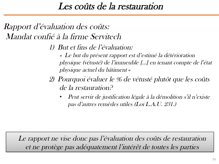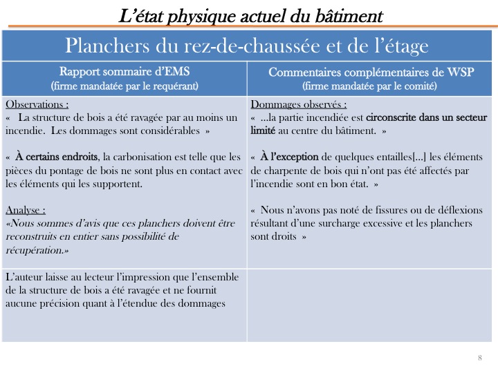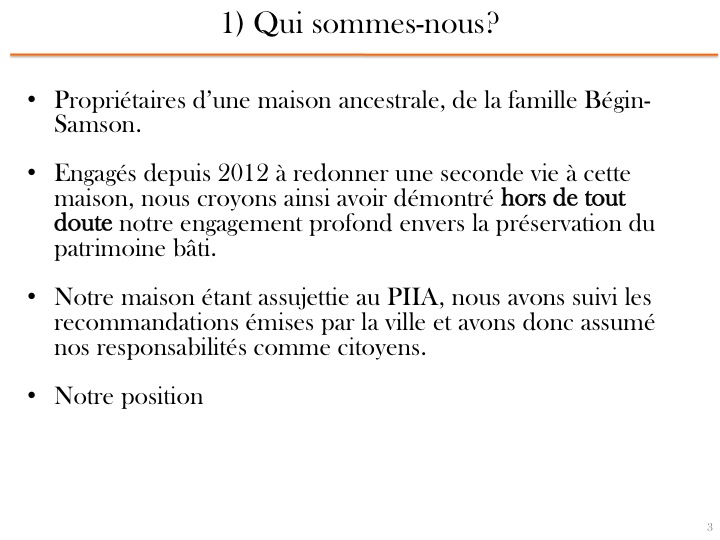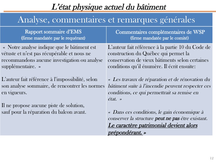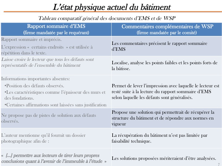 De plus, lorsque j’ai amené un bon ami en visite chez moi, historien et archéologue, nous avons fait le tour de la maison et il a immédiatement noté la solidité du bâtiment. Les fondations ne semblaient pas du tout endommagées ni affectées. Plusieurs éléments étaient toujours bons. S’en est suivi de plusieurs explications sur les méthodes de construction et les matériaux utilisés dans ce temps-là. Il était estomaqué d’apprendre la possible démolition du bâtiment qui pour lui est un témoin important de l’histoire, en plus de son emplacement…