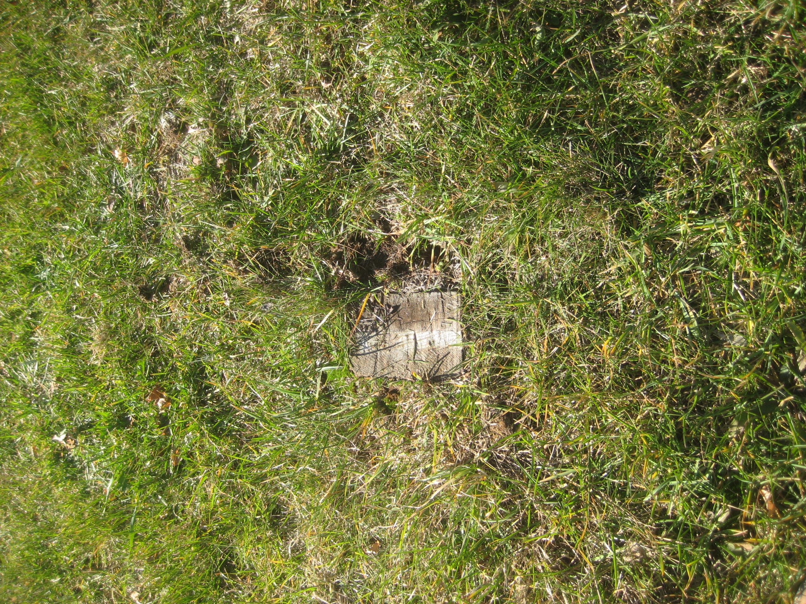 L'un des deux poteaux encadrant  l'enseigne, scié à raz le sol