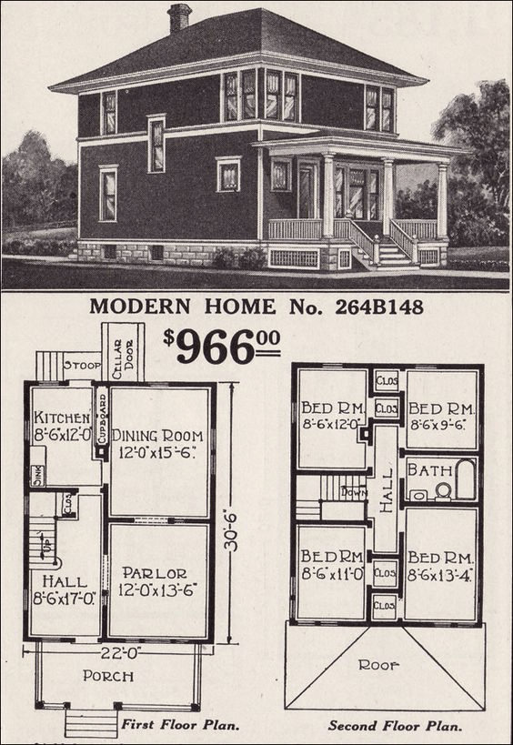 Modèle de »maison cubique » fabriquée en usine par Sears & Roebock et livrée par wagons-rails dans les états du Nord-Est Américain au début des années 1900