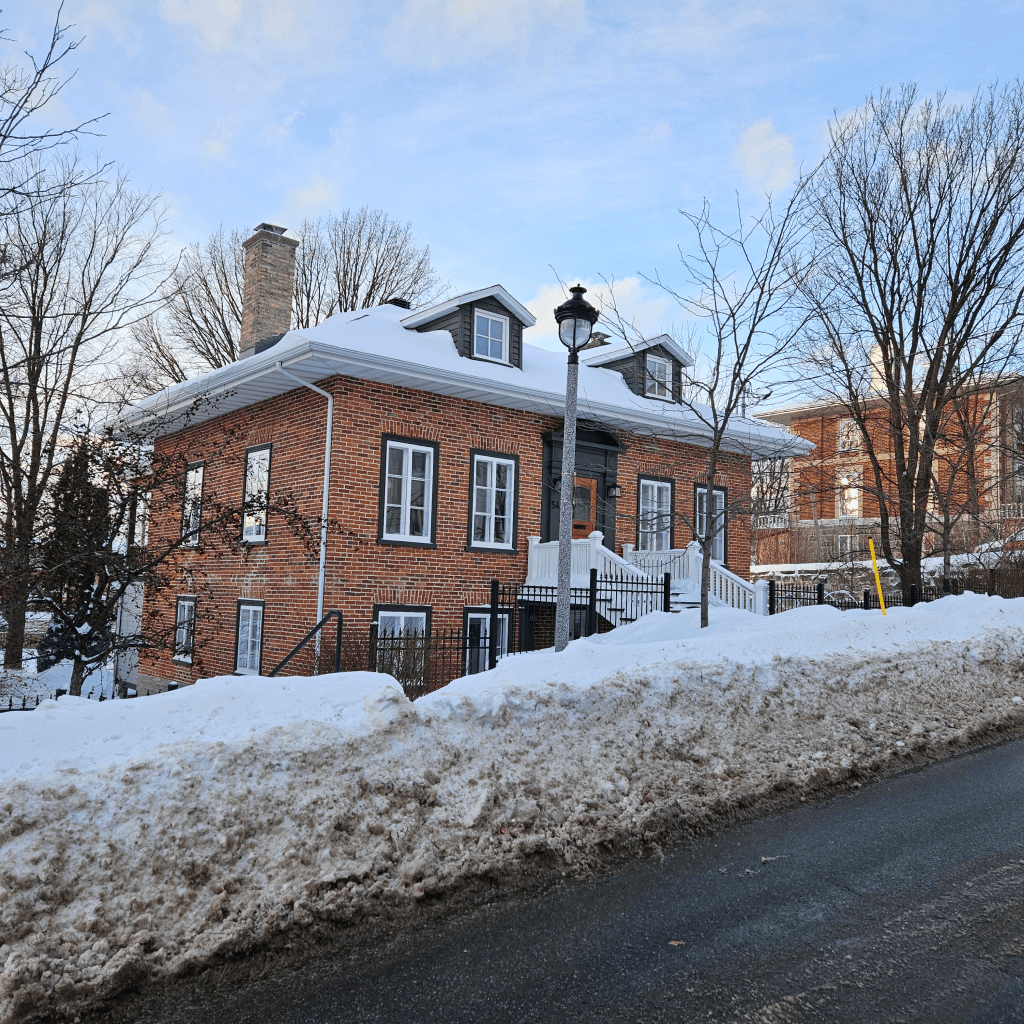 Dans le Vieux-Lévis, une vingtaine de maisons d’architecture << cubique >> construites sur la falaise et le long des rues du ‘‘Vieux-Lévis », auparavant la »Ville d’Aubigny ».
